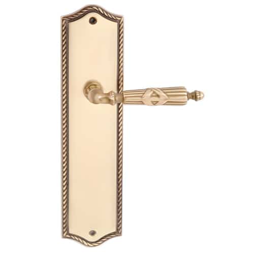 This lever’s subtle curvature and textured surface sits on top of a plate of your choice. Your home’s interior doors will get a royal allure, without pomp and glamor.