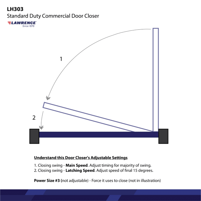 Door Closer, Standard Duty Cast Aluminum Adjustable Commercial, Lawrence Hardware LH303 EMBASSY® Series